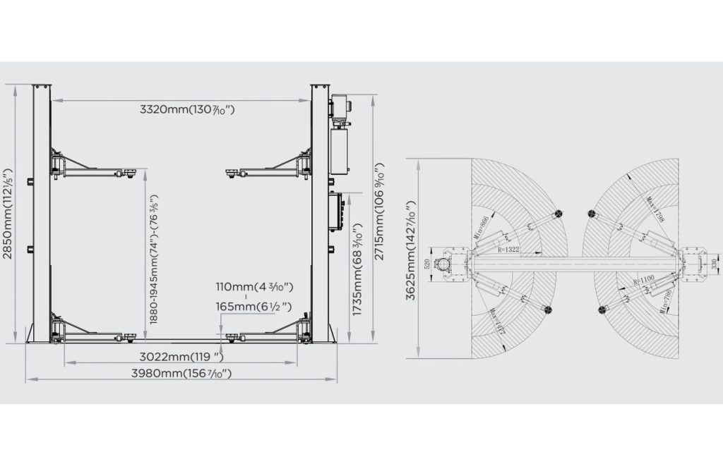 - Convient aux véhicules larges : largeur jusqu’à 3320 mm entre les colonnes