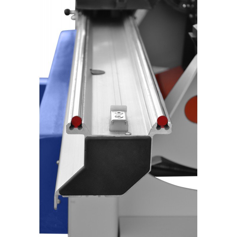 Scie circulaire à format Cormak MJ45-KB -2000 avec table coulissante, lame de scie pivotante. Triphasé 400v, longueur de la table: 3200mm. Lame de scie circulaire pivotante et réglable en hauteur avec unité de coupe. Table en fonte grise avec rallonge de table à l’arrière et à droite avec pied d’appui.
