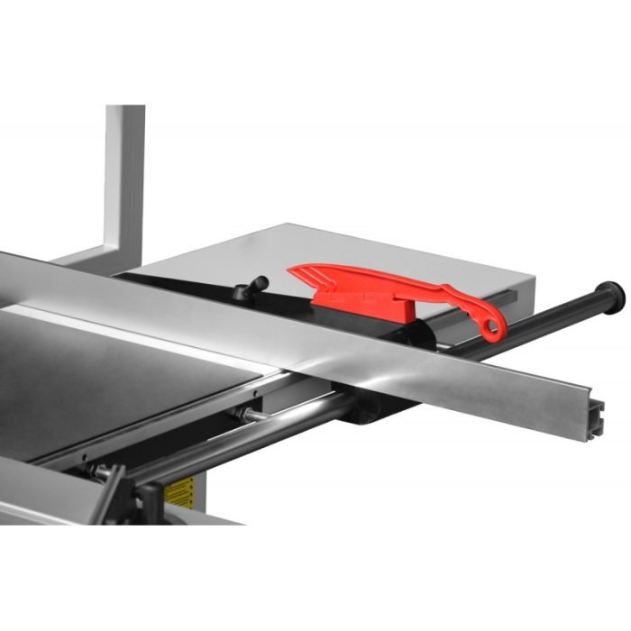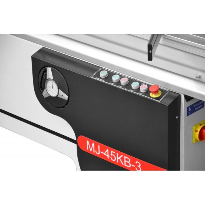 Scie à format Cormak MJ45-KB -3200 avec table coulissante, lame de scie pivotante. Triphasé 400v, longueur de la table: 3200 mm. Lame de scie circulaire pivotante et réglable en hauteur avec unité de coupe. Table en fonte grise avec rallonge de table à l’arrière et à droite avec pied d’appui.